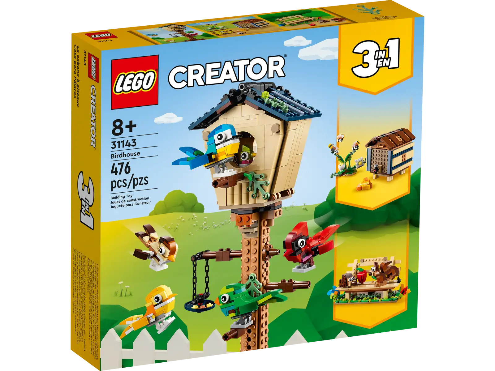 - 3in1 toy – LEGO® fans can play out enchanting animal stories with this LEGO Creator 3in1 Birdhouse (31143), featuring 3 scenes in 1: a birdhouse, park bench animals and a beehive